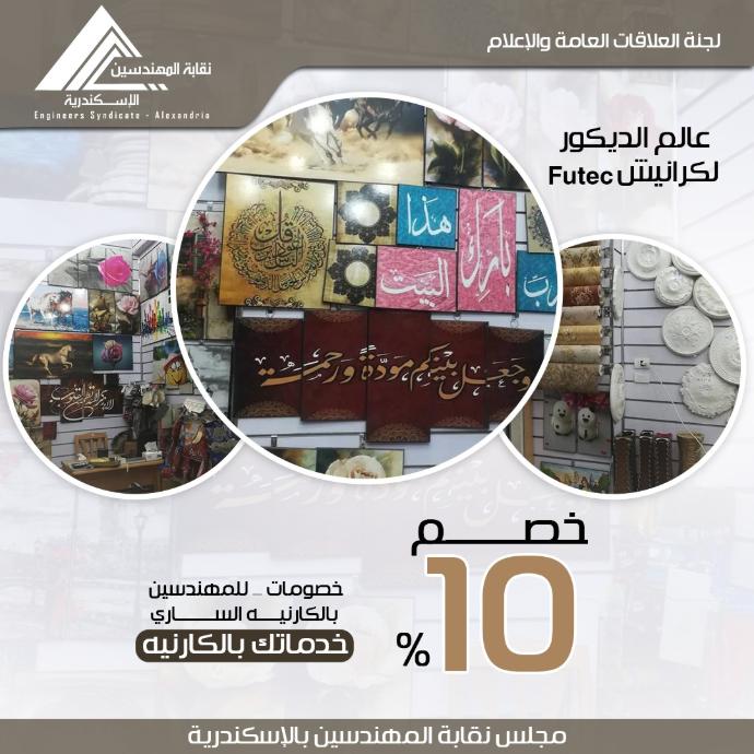خصم 10% مقدم من عالم الديكور وكيل "لكرانيش "Futecللسادة المهندسين بكارنيه النقابة الساري ولأسرة المهندس بكارنيه نادي المهندسين الساري.