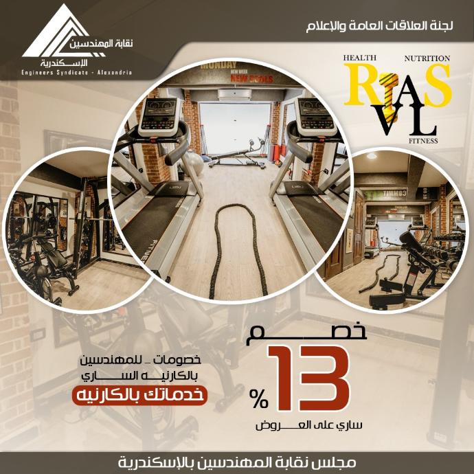 خصم 13% على العروض مقدم من Rivals Gym للسادة المهندسين بكارنيه النقابة الساري ولأسرة المهندس بكارنيه نادي المهندسين الساري.