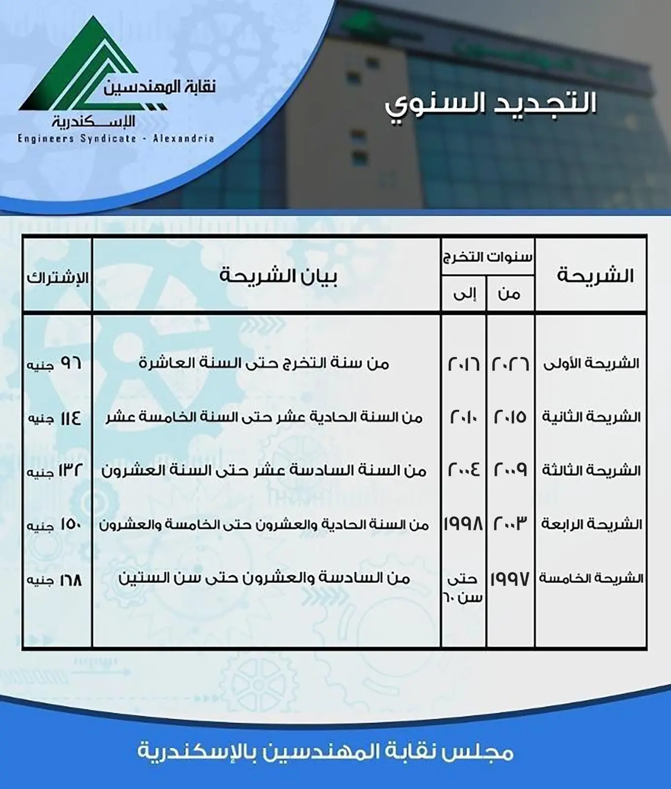 للإستعلام عن آخر سداد لاشتراك النقابة ومعرفة المبالغ المستحقة حتى عام 2025 برقم العضوية أو الرقم القومي عبر الرابط التالي